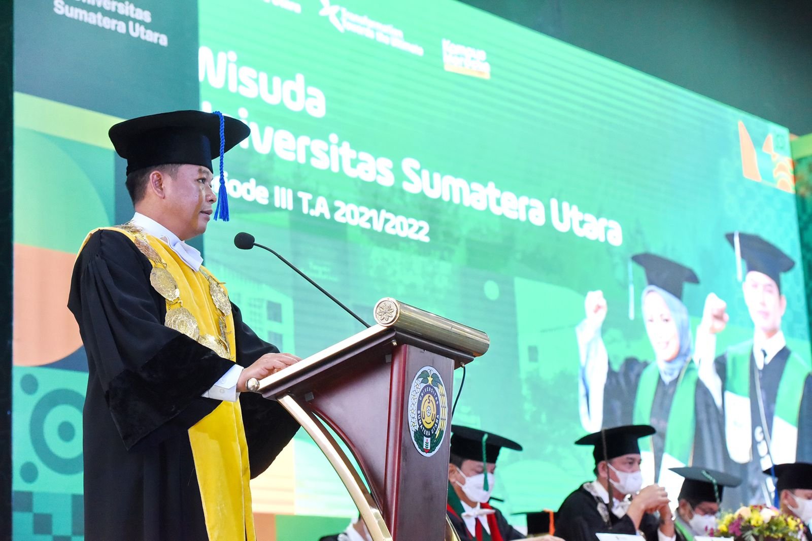 Rektor Universitas Sumatera Utara (USU) Dr. Muryanto Amin, S.Sos., M.Si kembali melantik 1.150 wisudawan dalam wisuda periode III Tahun Ajaran (T.A.).