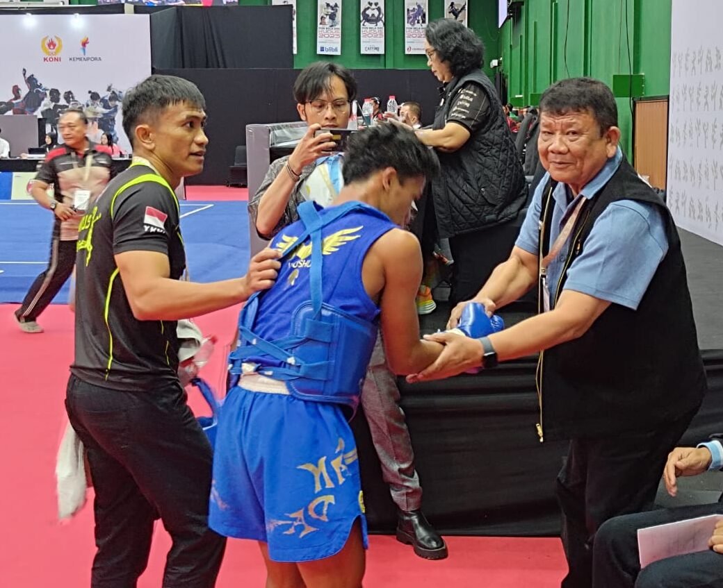 Inimedan.com-Kudus | Karateka Ady Lawyer membuka kran medali emas karate Sumut pada PON Bela Diri II/2025 di GOR Kaliputu Kudus, Jateng, Jumat (24/10/2025). Rizki yang bertanding di Kelas +55kg berhak atas medali emas setelah tampil gemilang menyapu bersih kemenangan dari babak penyisihan hingga final.
