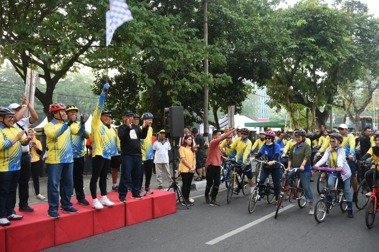 Pelaksana tugas (Plt) Wali kota Medan Ir H Akhyar Nasution MSi mendampingi Gubsu Edy Rahmayadi melepas ratusan peserta Medan Bankers Fun Bike yang digelar Badan Musyawarah Perbankan Sumut di Lapangan Benteng Medan, Minggu (15/3). Kegiatan ini digelar dalam rangka untuk meningkatkan kesehatan para bankers. Sebab, kesehatan sangat penting terhadap peningkatan kuantitas dan kualitas produktivitas maupun beraktivitas sehingga perbankan di Sumut, termasuk Kota Medan menjadi lebih baik lagi ke depannya.