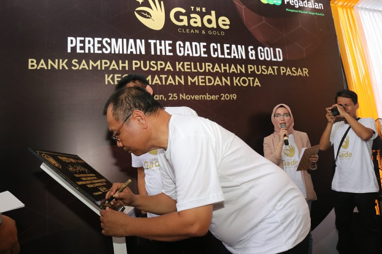 Peresmian Bank Sampah Puspa ditandai dengan penandatanganan prasasti dan pengguntingan pita yang dilakukan Plt Wali Kota bersama Pimpinan Wilayah PT Pegadaian (Persero) Kanwil I Medan Hakim Setiawan didampingi sejumlah deputi diantaranya Indra Firmansyah (Deputi Operasional), Suhadi (Deputi Bisnis Medan I) dan Anhar Nasution (Deputi Bisnis Medan ll) serta Kadis Kebersihan dan Pertamanan HM Husni. Setelah itu dilanjutkan dengan peninjauan bank sampah dan taman yang ada di sebelah bank sampah.(di).