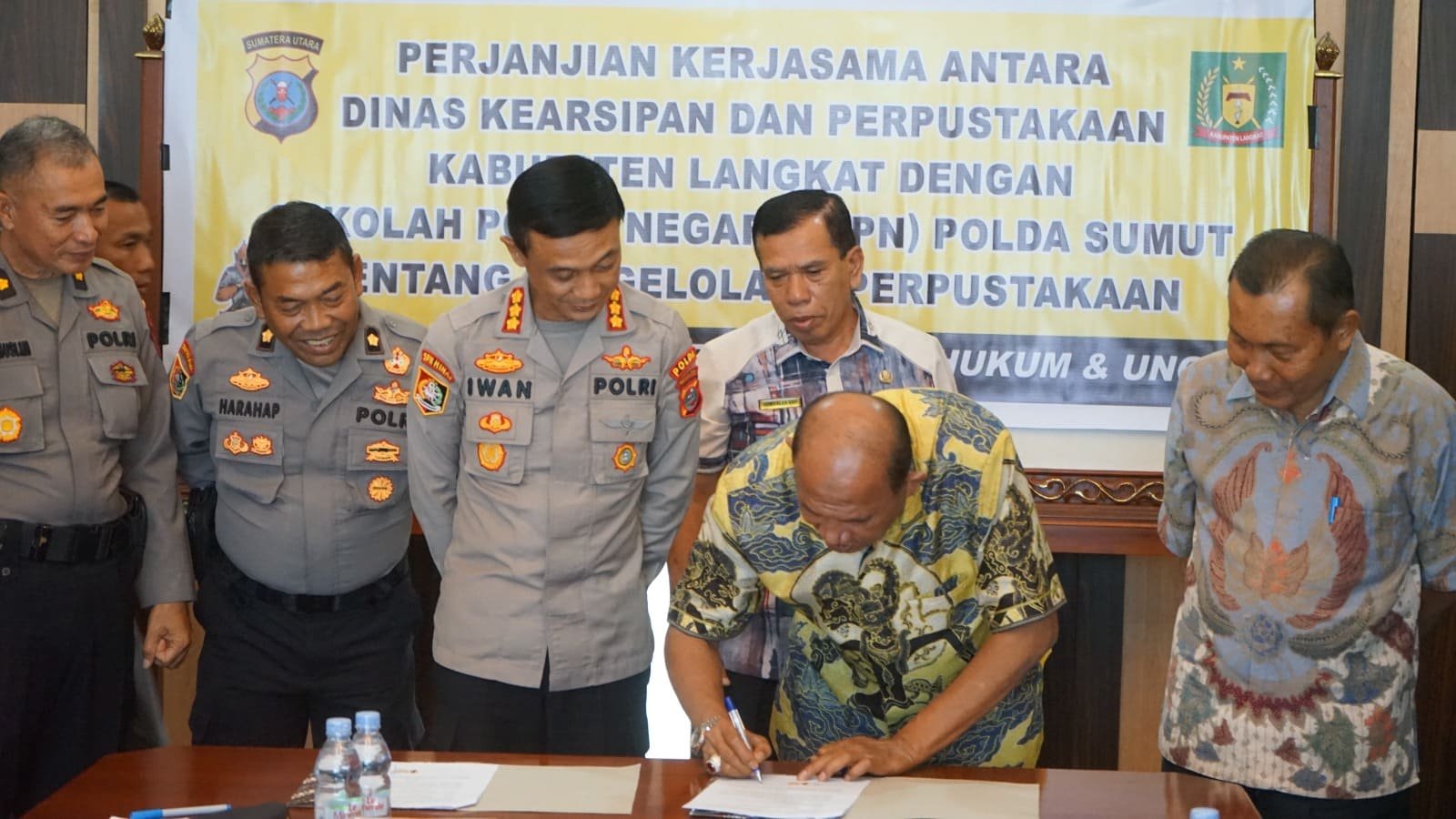 Selanjutnya Plt Bupati Langkat H.Syah Afandin SH melakukan penandatanganan MoU Tentang Perpustakaan antara Pemerintah Kabupaten Langkat dengan SPN Hinai Polda Sumut bertempat di Kantor Bupati Langkat, Jumat (20/10/2023).