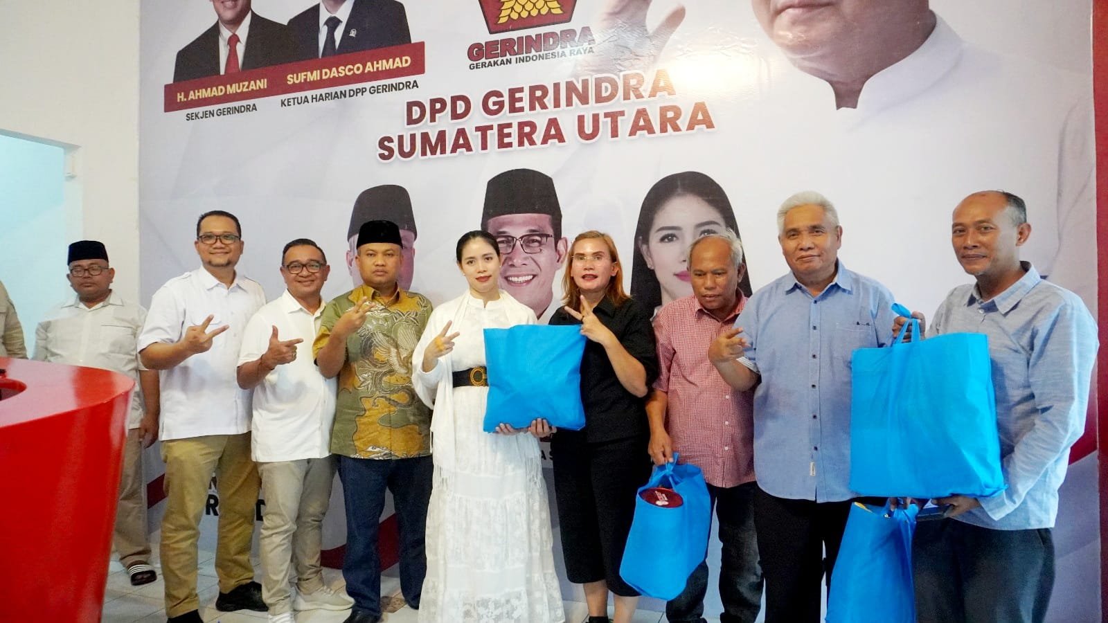 Bingkisan Lebaran itu dibagikan Ketua Gerindra Sumut, Gus Irawan Pasaribu, diwakili Sekretaris Sugiat Santoso dan Bendahara Merry Amalia Prasetio atau yang akrab disapa Ayin.