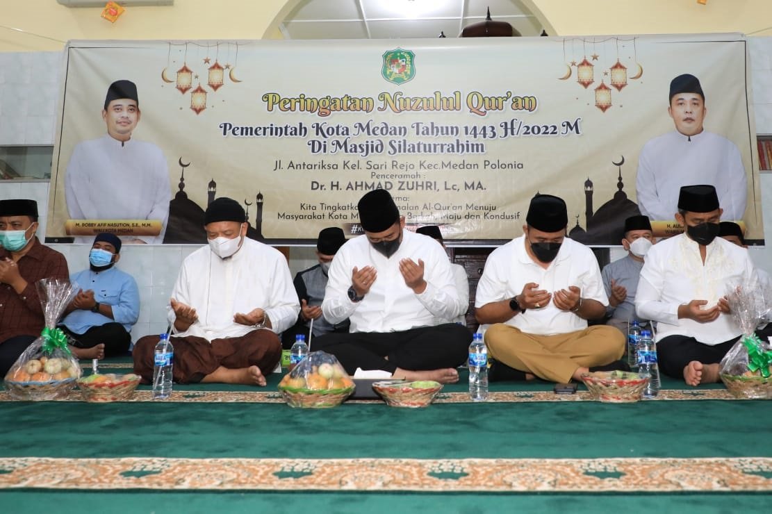 Peringatan Nuzulul Qur’an yang dihadiri langsung Wali Kota Medan Bobby Nasution ini diawali dengan pembacaan Ayat Suci Alquran. Selain itu juga diisi dengan tausiyah agama yang disampaikan oleh Al ustadz Ahmad Zuhri. Dalam kesempatan tersebut Pemko Medan juga memberikan bantuan untuk Masjid Silaturahim dan pemberian santunan kepada anak yatim-piatu yang diserahkan Bobby Nasution kepada Ketua BKM Masjid Silaturahim Iqbal.