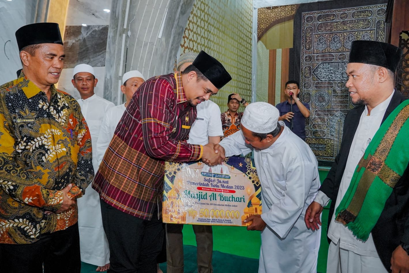 Dalam safari Jumat ini, Bobby Nasution juga memberikan bantuan senilai Rp 50 Juta untuk pembangunan mesjid Al Buchori yang diterima Ketua BKM Mesjid H Adibyo. Selain itu Bobby Nasution juga memberikan bantuan sosial senilai Rp 10 Juta, akte pendirian koperasi dan 2 unit gerobak usaha serta satu set Tenis Meja dan rak buku lengkap dengan buku bacaannya untuk mesjid Al Buchori.*di#