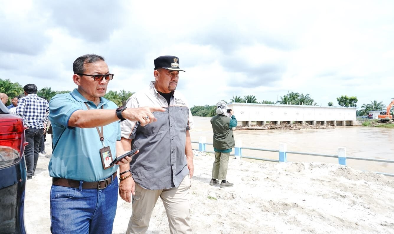 Inimedan.com -Batu Bara    |  Bupati Batu Bara H. Baharuddin Siagian, S.H., M.Si., bersama anggota DPRD Provinsi Sumatera Utara, Yahdi Khoir, serta Tim Staf Ahli Kementerian Pertanian RI Ibu Ani dan Bapak Aris, meninjau langsung kondisi bendung Sungai Dalu-Dalu yang berada di Desa Sukaraja, Kecamatan Air Putih, Kabupaten Batu Bara, Sabtu (13/12/2025).