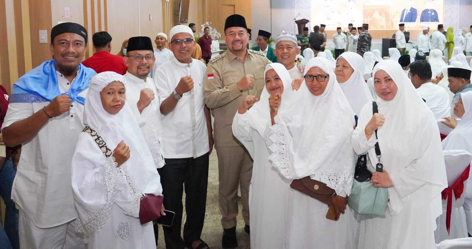 Inimedan.com – Batu Bara    | Bupati Batu Bara H. Baharuddin Siagian, S.H., M.Si., menepung tawari jemaah calon haji Kabupaten Batu Bara Tahun 1447 Hijriah/2026 Masehi yang digelar di Aula Kantor Bupati Batu Bara, Kecamatan Lima Puluh, Senin (20/4/2026).