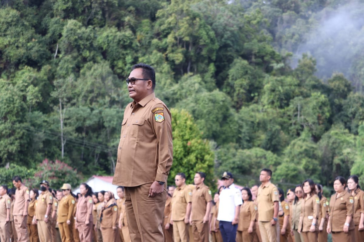 Bupati Pakpak Bharat, Franc Bernhard Tumanggor memimpin apel Gabungan bagi segenap Aparatur, para Camat, dan Kepala Desa di wilayah Kabupaten Pakpak Bharat, Senin (04/09).