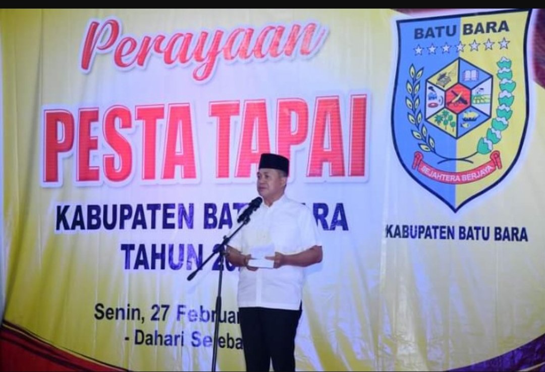 Bupati Batu Bara Ir Zahir MAP Resmi membuka tradisi lokal pesta tapai (tape) yang biasa di gelar menyambut datangnya bulan Suci Ramadhan, di sepanjang jalan Desa Dahari Silebar, Kecamatan Talawi, Kabupaten Batu Bara. Senin, (27/2/2023).