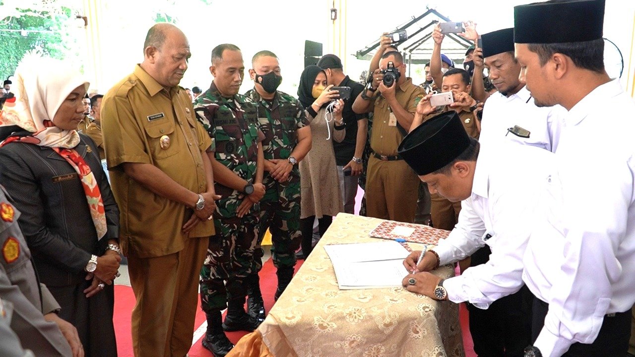 Pemerintah Kabupaten Langkat menggelar deklarasi damai Pemilihan Kepala Desa (Pilkades) serentak se- Kabupaten Langkat, di Pendopo Jentera Malay Rumah Dinas Bupati Langkat, Stabat, Senin (13/6/2022).