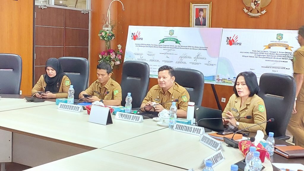 Sebelumnya, laporan Ketua tim pembangunan Zona Integritas menuju WIlayah Bebas Korupsi (WBK) dan Wilayah Birokrasi dan Bersih Melayani (WBBM) yang juga Kabag Program dan Keuangan sekretariat DPRD Medan Erisda Hutasoit SE MSP menyampaikan selama pembangunan zona integritas akan dilakukan pendampingan dan pemantauan oleh tim penilai internal untuk memastikan bahwa pelaksanaan program berjalan sesuai yang direncanakan.