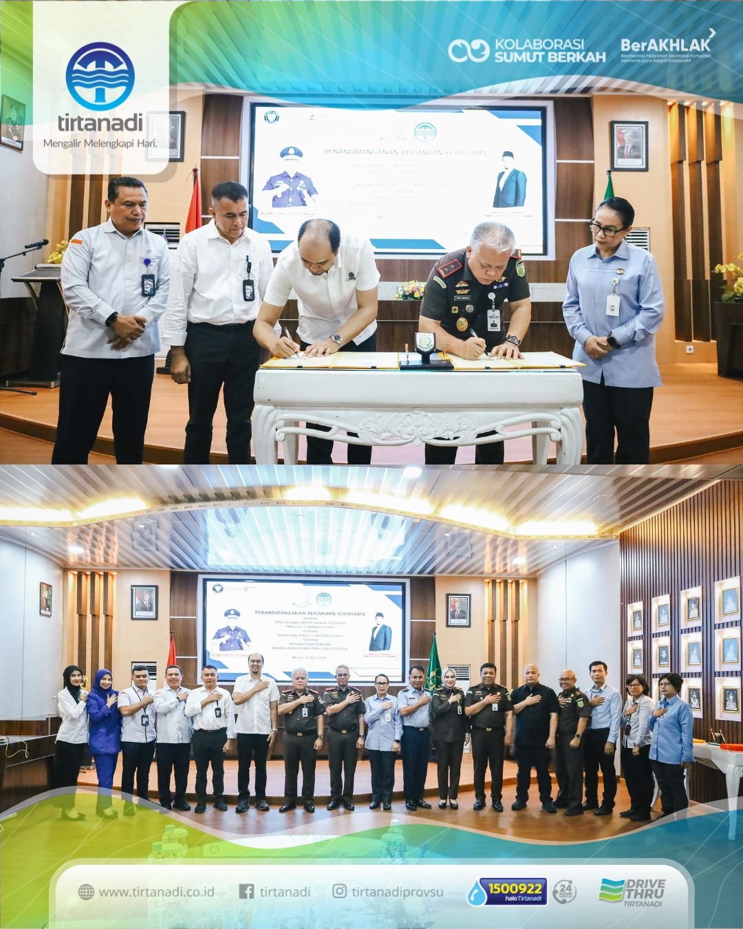 Inimedan.com-Medan | Direktur Utama Perumda Tirtanadi Provinsi Sumatera Utara, Ardian Surbakti bersama Kepala Kejaksaan Tinggi Sumatera Utara (Kajatisu) Harli Siregar, menandatangani nota kesepahaman (MoU) terkait penanganan perkara di bidang Perdata dan Tata Usaha Negara (DATUN).