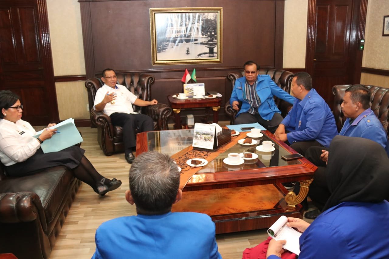 Pengurus Dewan Pimpinan Cabang (DPC) Konfederasi Serikat Pekerja Seluruh Indonesia (KSPI) Kota Medan menemui Pelaksana tugas (Plt) Wali Kota Medan Ir H Akhyar Nasution MSi di Balai Kota Medan, Senin (26/11). Selain bersilaturahmi, ada sejumlah aspirasi dari para pekerja (buruh) yang disampaikan untuk minta disikapi.
