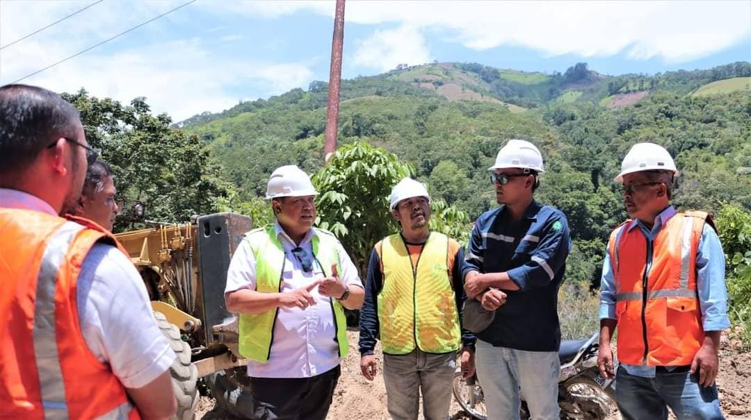 Bupati Dairi Dr. Eddy Keleng Ate Berutu meninjau perbaikan badan jalan Dusun Liren – Kuta Gambir – Lau Primbon, Kecamatan Tanah Pinem, Kabupaten Dairi, Rabu (13/09)