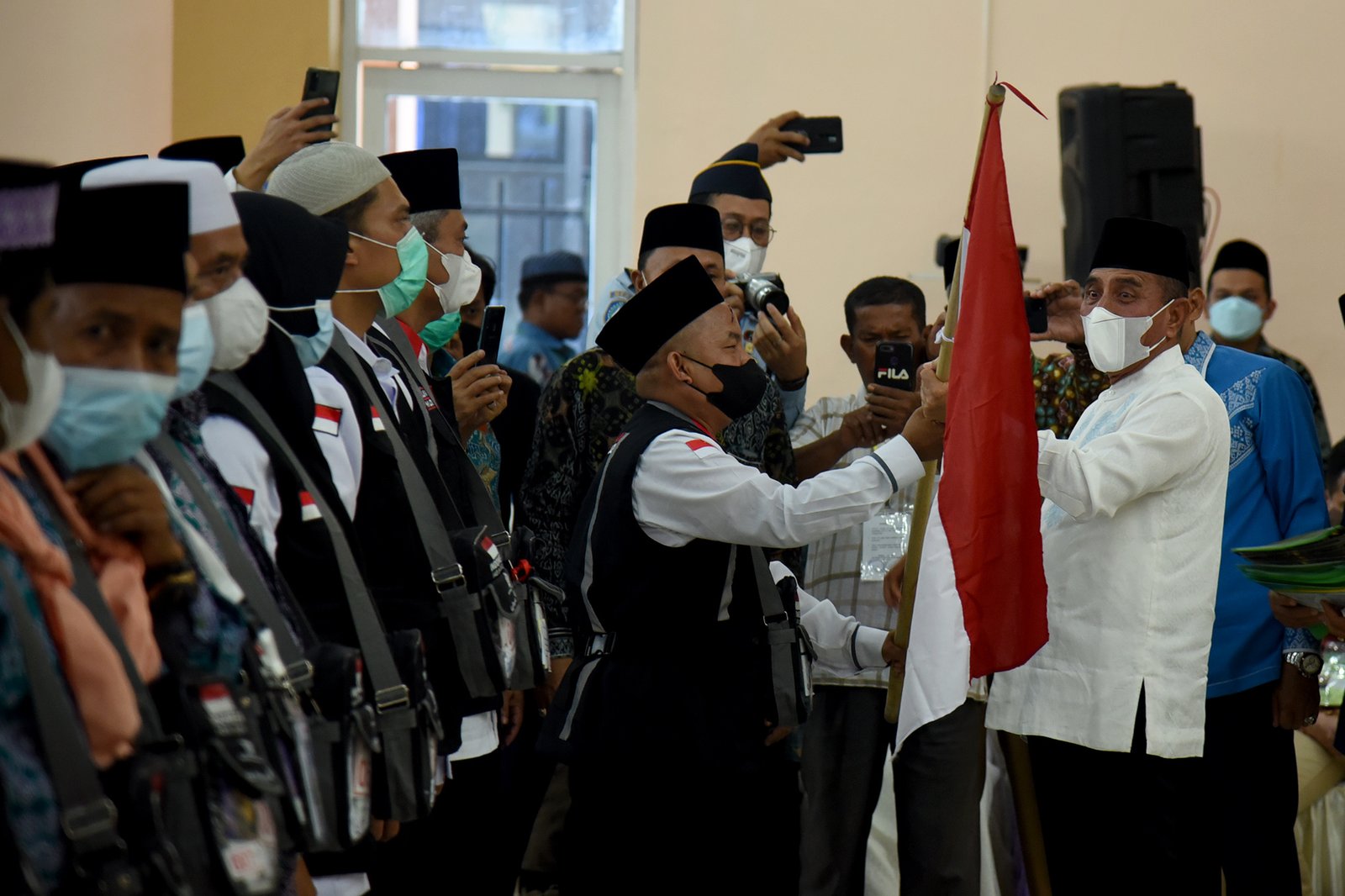 Gubernur Sumatera Utara (Sumut) Edy Rahmayadi melepas keberangkatan Calon Jemaah Haji (Calhaj) Kelompok Terbang (Kloter) Pertama Embarkasi Medan, Sabtu (11/6) di Gedung Madinatul Hujjaj Asrama Haji Medan, Jalan Jendral Besar AH Nasution, Medan. Kloter pertama ini dijadwalkan terbang ke Tanah Suci, Sabtu (11/6) malam, melalui Bandara Internasional Kualanamu.