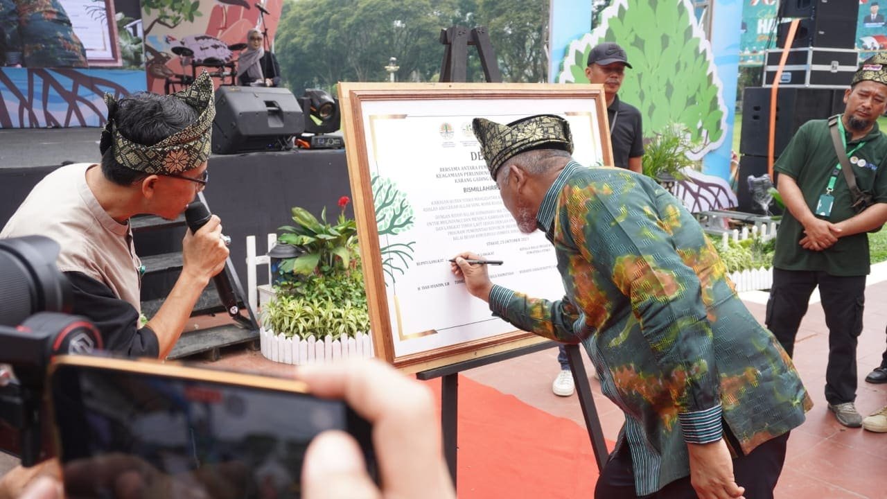 Selanjutannya Deklarasi, pembacaan ikrar dan penandatanganan bersama oleh Plt Bupati Langkat H. Syah Afandin, SH diwakili Asisten Perekonomian dan Pembangunan H. Sukhyar Mulyamin, S.Sos, M.Si, Kepala Balai KSDA Sumatera Utara Rudianto Saragih Napitu, S.Si, M.Si, Sultan Langkat Tuanku Azwar Aziz Abdul Djalil Rahmatshah, Tuan Guru Uztad KH.H. Thamrin Munthe, dan Ketua kelompok tani hutan Desa Sekitar Kawasan Suaka Margasatwa Karang Gading dan Langkat Timur Laut.