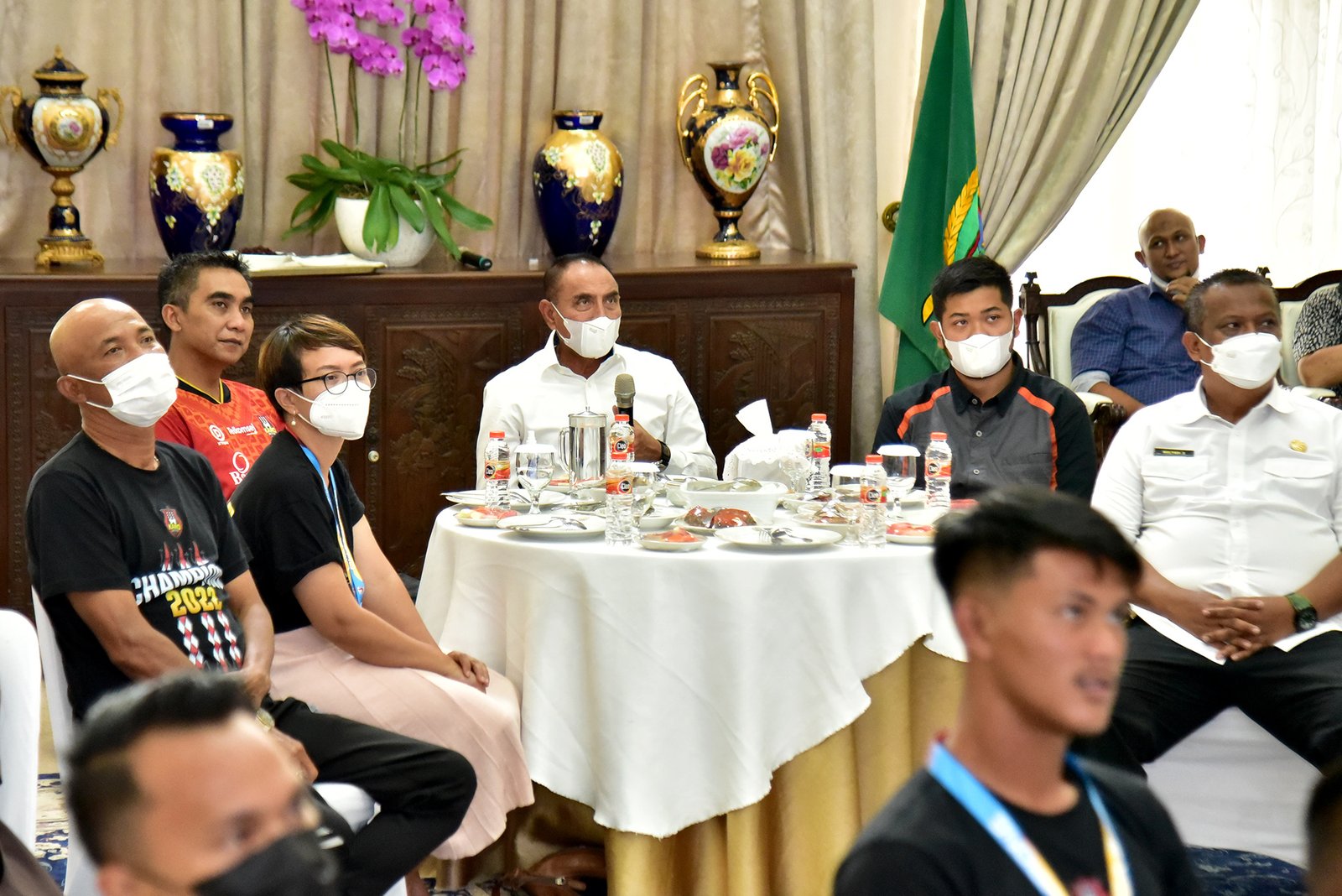 Gubernur Sumatera Utara (Sumut) Edy Rahmayadi menyambut kedatangan Tim Karo United di kediaman dinasnya Jalan Jenderal Sudirman Nomor 41, Medan, usai klub sepakbola tersebut menjalani laga final dan menjadi juara Liga 3 Nasional. Atas keberhasilan membawa pulang trofi bundar dari PSSI, Edy Rahmayadi menyumbang 50 bola untuk digunakan latihan anak asuh Suharto AD ini.