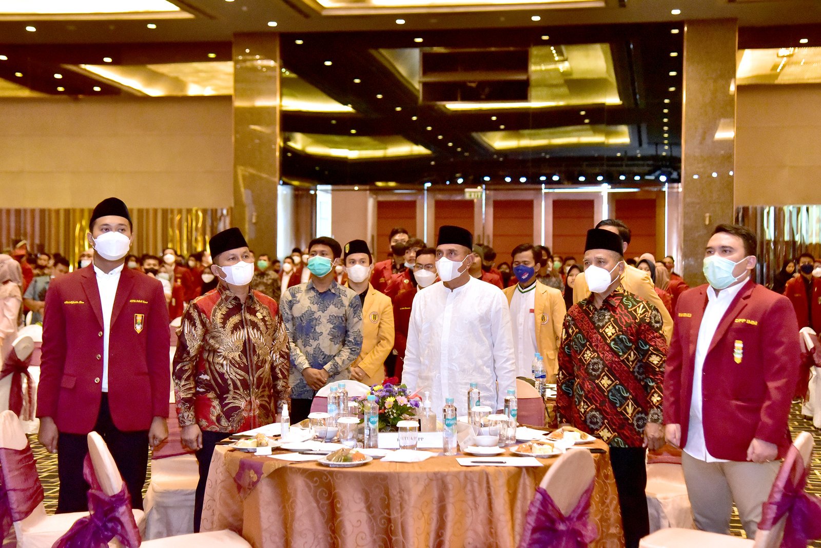 Ket.Gambar : Gubernur Sumatera Utara (Sumut) Edy Rahmayadi menghadiri acara pelantikan Ikatan Mahasiswa Muhammadiyah (IMM) Provinsi Sumut (2021-2023) di Ballroom Hotel Grand Mercure, Jalan H.M Yamin Medan, Jumat (11/2/2022).