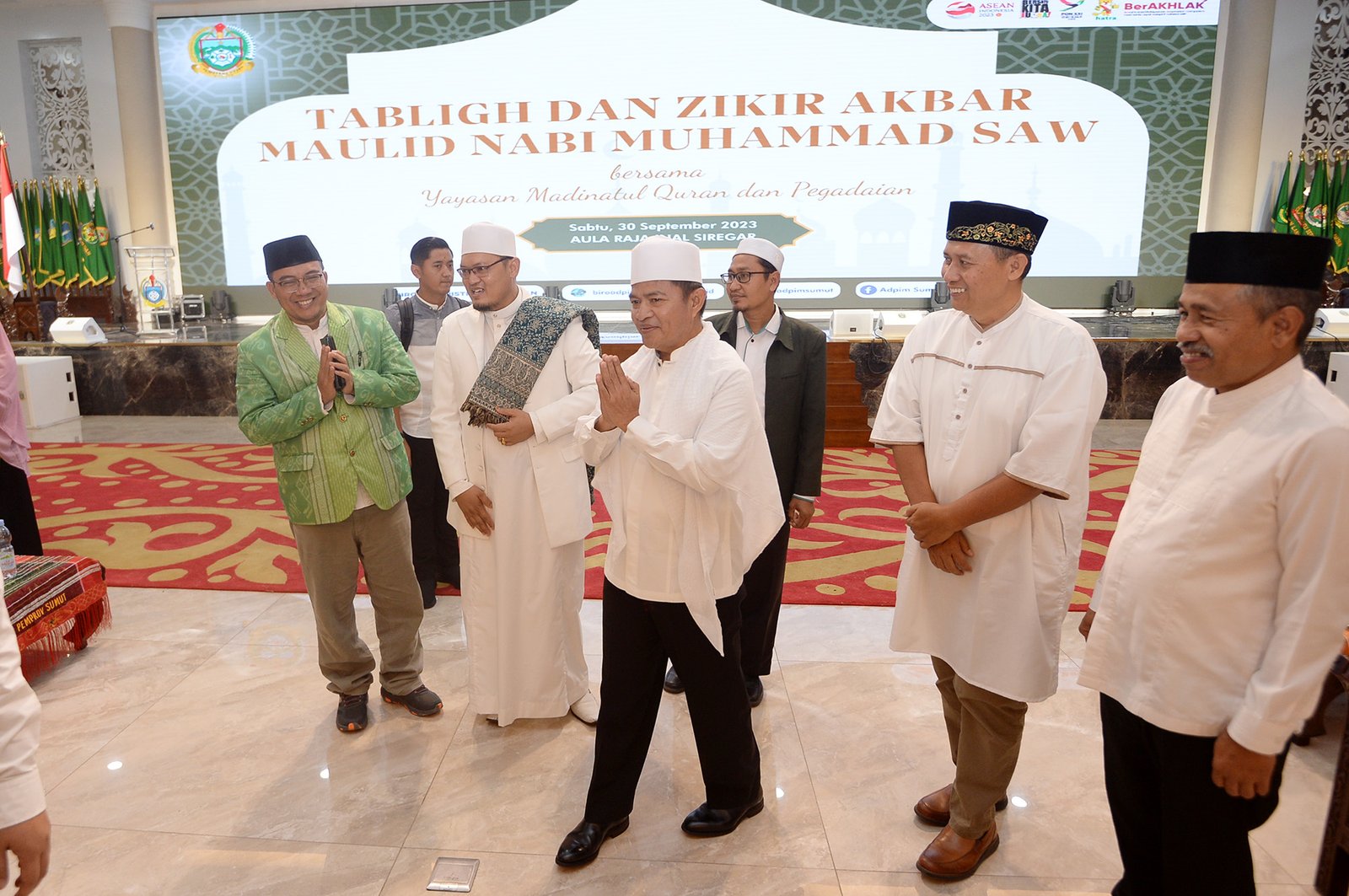 Hadir di antaranya Pendiri Yayasan Madinatul Quran Ustaz Fadli Sudiro, sejumlah Pimpinan Organisasi Perangkat Daerah (OPD) Sumut, Pegawai Kanwil Pegadaian Sumut, serta ribuan jemaah Madinatul Quran.