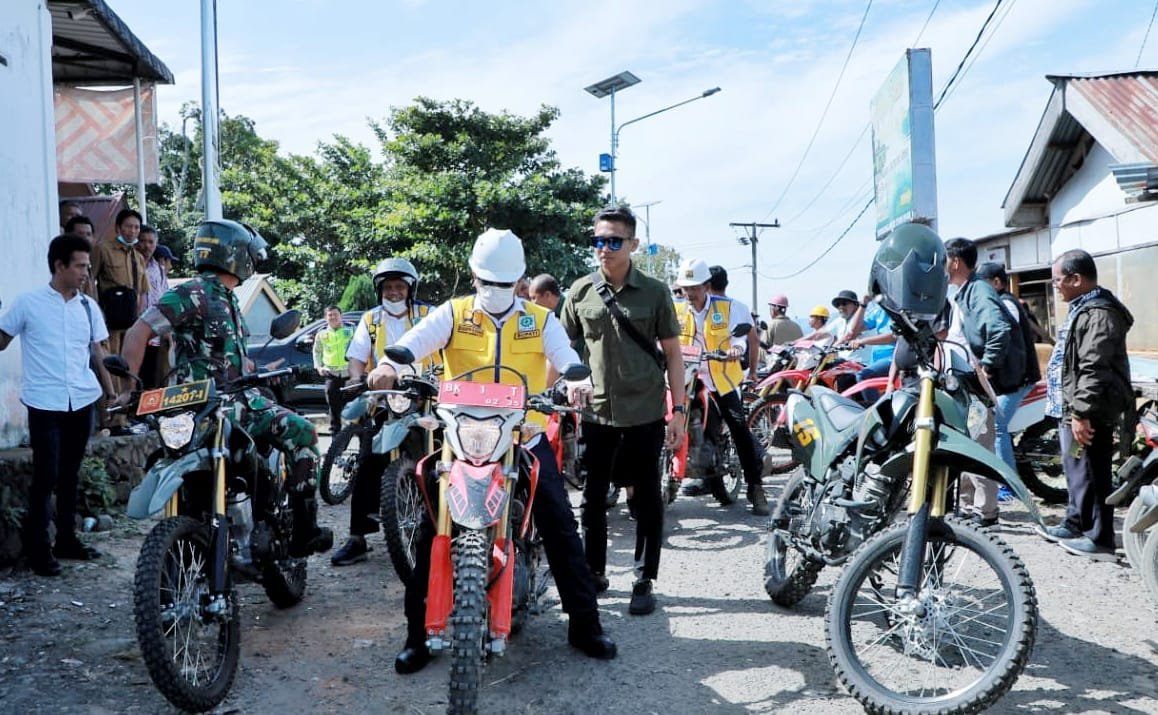 Ket.Gambar  : Bupati Bersama rombongan bersiap menggunakan sepeda motor monitiring perbaikan jalan.