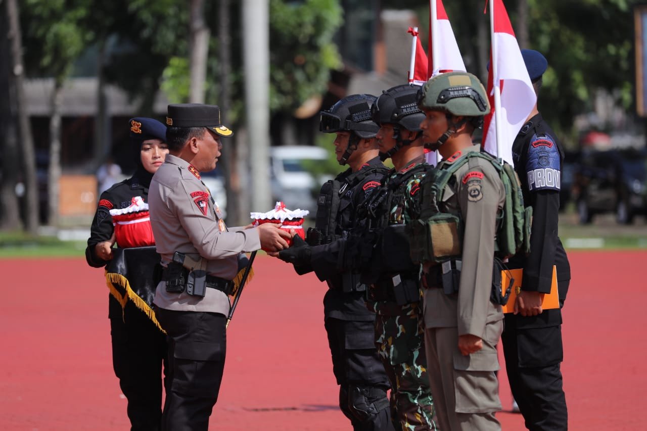 Kapolda Sumut Irjen Pol. Drs. R.Z. Panca Putra S,M.Si berangkatkan tim pengambilan air suci di 3 lokasi dalam rangka menyambut Hari Bhayangkara ke 77 yg di laksanakan di lapangan K.S . Tubun Mapolda Sumut. Senin (12/06/23)