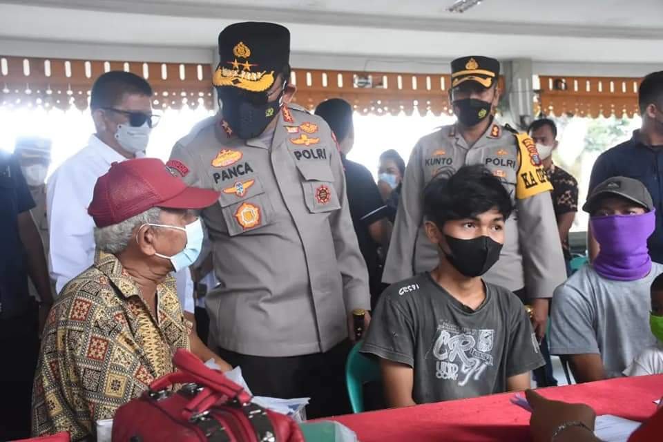 Kapolda Sumatera Utara (Kapoldasu) Irjenpol. RZ. Panca Putra Simanjuntak, M.Si. meninjau langsung pelaksanaan vaksinasi massal serentak seluruh Indonesia yang dilaksanakan di Kota Tebingtinggi, Rabu (16/3/2022), bertempat di anjungan lapangan Sri Mersing.