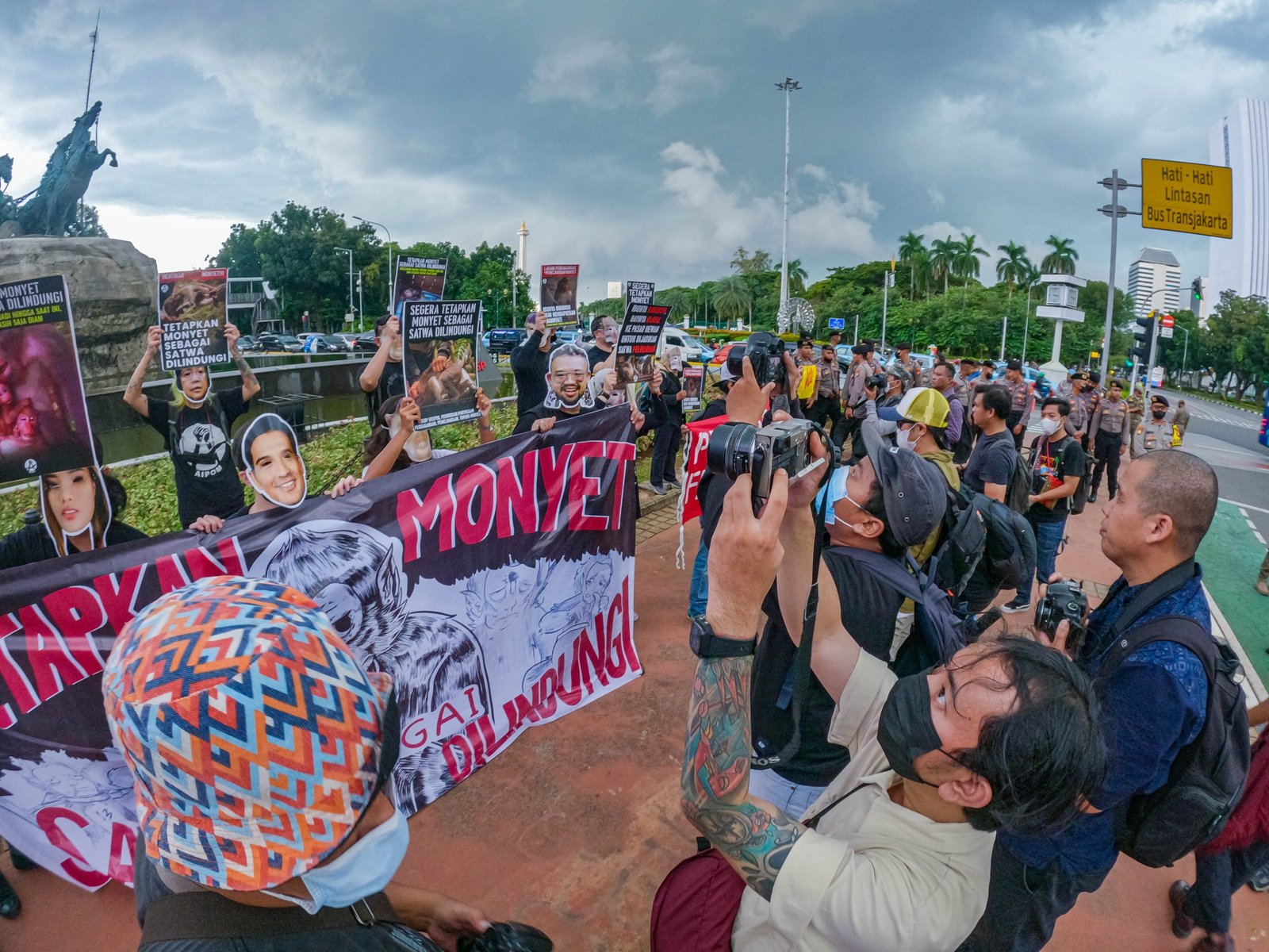 Dari kantor KLHK, relawan berpindah ke kawasan patung kuda, Jl. Medan Merdeka Barat, dan kembali menyampaikan aspirasi hingga pukul 15.30. Aksi kali ini mendapat dukungan warga Jakarta yang melintas, berupa solidaritas untuk monyet dengan bergabung ke dalam aksi, dan menyebarkan poster tuntutan di akun media sosial masing-masing. *rel#
