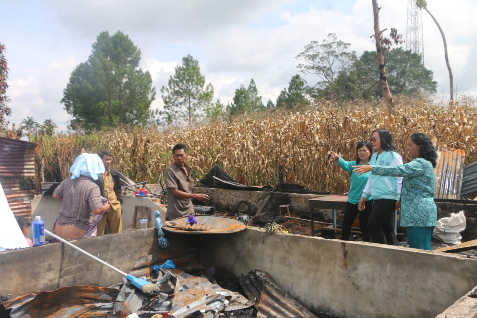Selain memberikan dukungan moril, Ketua TP PKK Tapanuli Utara beserta rombongan juga menyerahkan bantuan berupa bahan pangan, sembako, peralatan dapur, serta pakaian baru guna membantu meringankan beban para korban kebakaran.