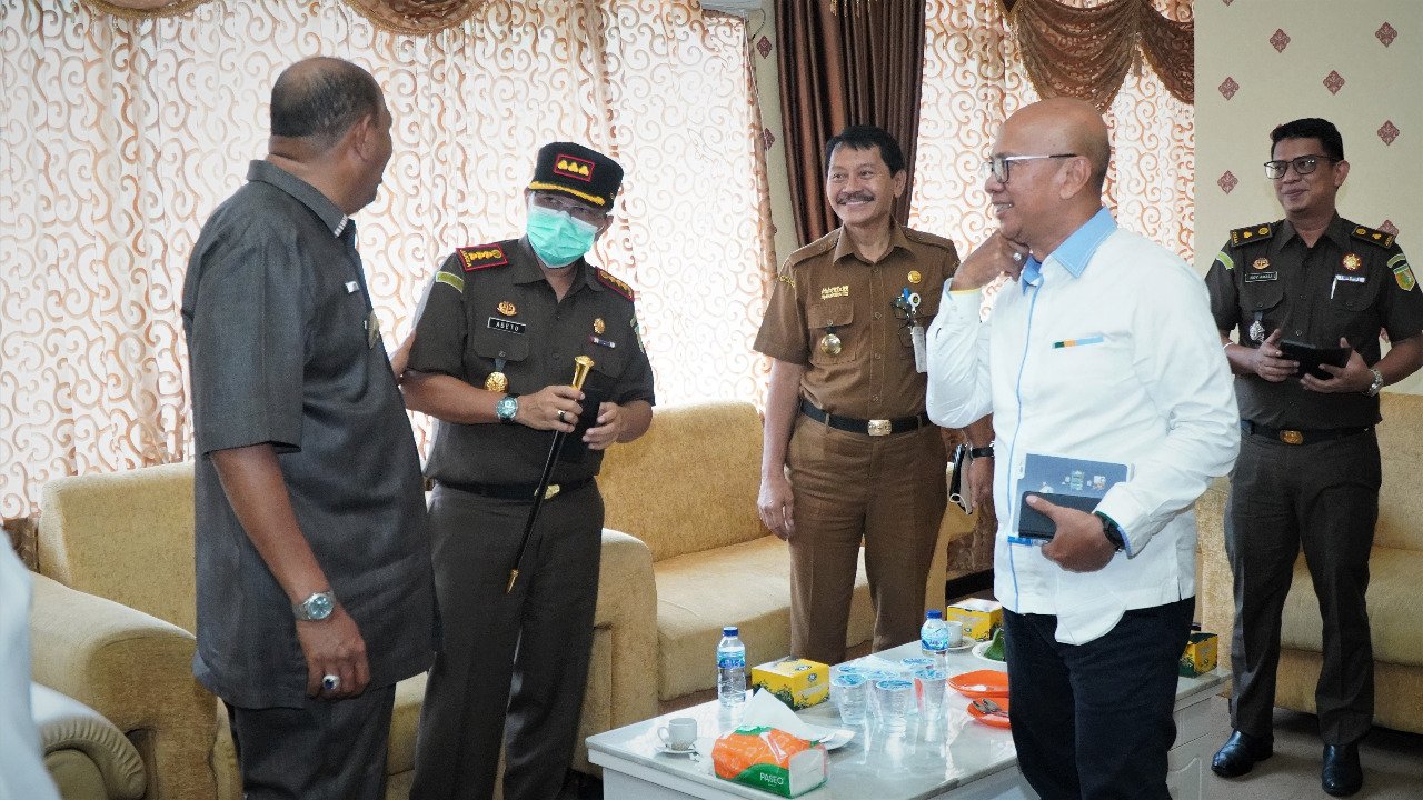 Pelaksana Tugas (Plt) Bupati Langkat H Syah Afandin SH menerima audiensi SEVP Manajemen Asset PTPN II, Pulung Rinandoro, di Kantor Bupati Langkat, Stabat, Senin (28/3/2022). Kedatangan Pulung untuk berkoordinasi pembebasan lahan PTPN II dari masyarakat.