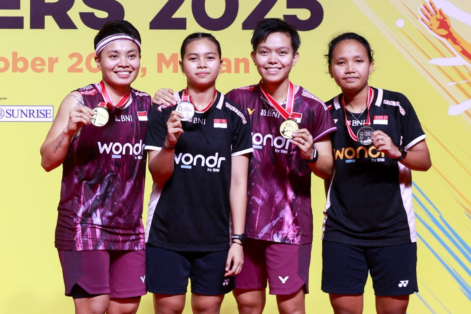 Inimedan.com-Medan Pasangan ganda putri Indonesia Apriyani Rahayu/Siti Fadia Silva tampil sebagai juara “Wondr by BNI Indonesia Master 2025” menyusul kemenangan yang diraih pasangan itu pada partai Final atas pasangan Indonesia lainnya, Isvana Syahira Meida/Rinjani Kwinnnara Nastine dua set langsung, dengan angka 21-11 / 21-17, Minggu (26/10/2025).
