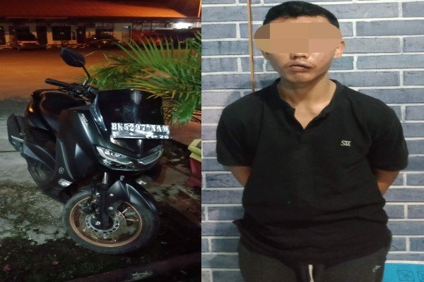 Tim Opsnal dan Kanit Resum I Ipda Dhimas Abie Thoyib S.Tr.K, yang menerima laporan bergerak ke arah tempat kejadian dan saat berada di Jl. Pulau Sumatera Kel. Persiakan Kota Tebing Tinggi tepatnya di perlintasan kereta api melihat tersangka dan kemudian melakukan penangkapan terhadap tersangka dan mengamankan barang bukti 1 (satu) unit sepeda motor Yamaha Nmax warna hitam tahun 2021 dengan Nomor Polisi BK 5297 NAW yang diambil⁰ dari korban, dan salah satu pelaku berhasil melarikan diri.