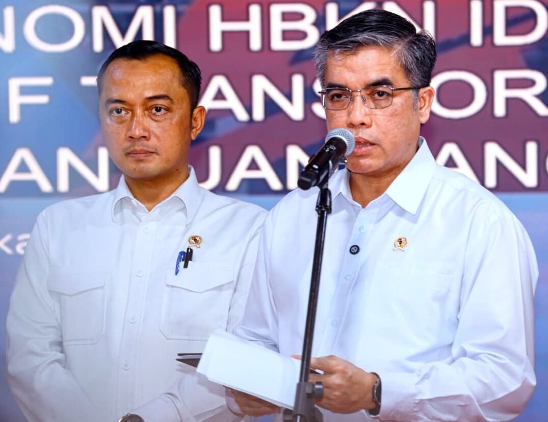 Konferensi pers ini turut dihadiri Menteri Sekretaris Negara Prasetyo Hadi, Menteri Perhubungan Dudy Purwagandhi, Menteri Sosial Saifullah Yusuf, Menteri Pendayagunaan Aparatur Negara dan Reformasi Birokrasi Rini Widyantini, serta Sekretaris Kabinet Teddy Indra Wijaya. *adi/Kemnaker#