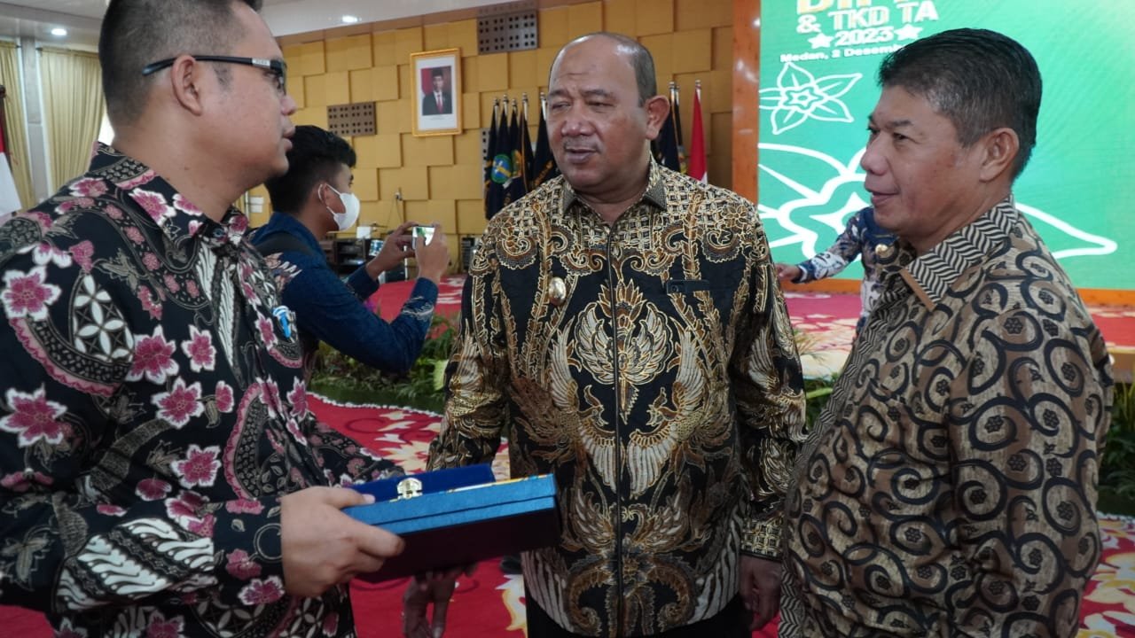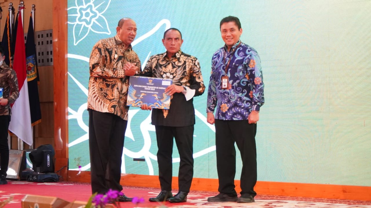 Pelaksana Tugas (Plt) Bupati Langkat H Syah Afandin SH mengikuti kegiatan Penyerahan Daftar Isian Pelaksanaan Anggaran (DIPA) dan Daftar Alokasi TKDD Tahun Anggaran 2023, di Aula Tengku Rizal Nurdin Rumah Dinas Gubsu, Medan, Jumat (2/12/2022).