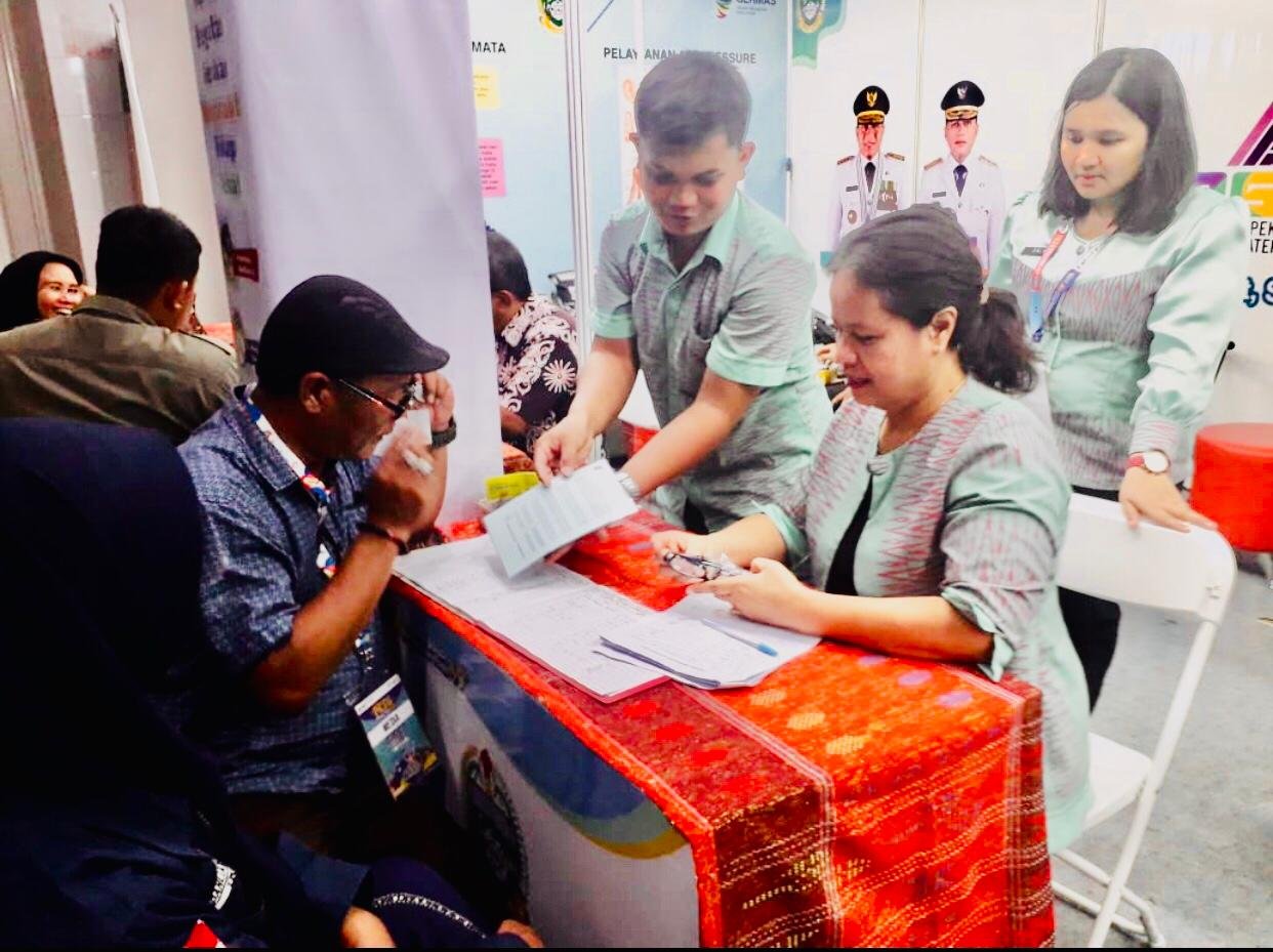 Petugas Stand antara lain Duma Siahaan dan Rido Sakkot Martuah Suhaloho dengan ramah dan profesional memberikan pelayanan terbaik, sehingga suasana antara pengunjung dengan petugas tampak akrab dan familiar.