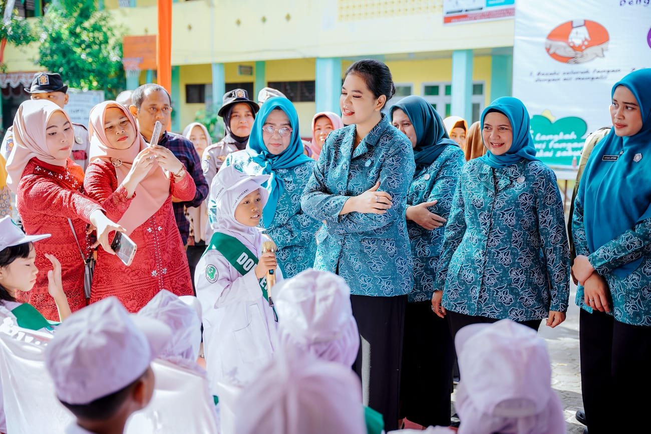Aksi praktek cuci tangan pakai sabun yang dilakukan Ketua TP PKK Kota Medan, Kahiyang Ayu Bobby Nasution bersama siswa – siswi Sekolah Dasar (SD) menjadi tanda peringatan Hari Cuci Tangan Pakai Sabun (CTPS) se- Dunia tingkat Kota Medan yang digelar di SD Negeri 060924 Medan Jalan SM Raja Kecamatan Medan Amplas, Kamis (7/9/2023).