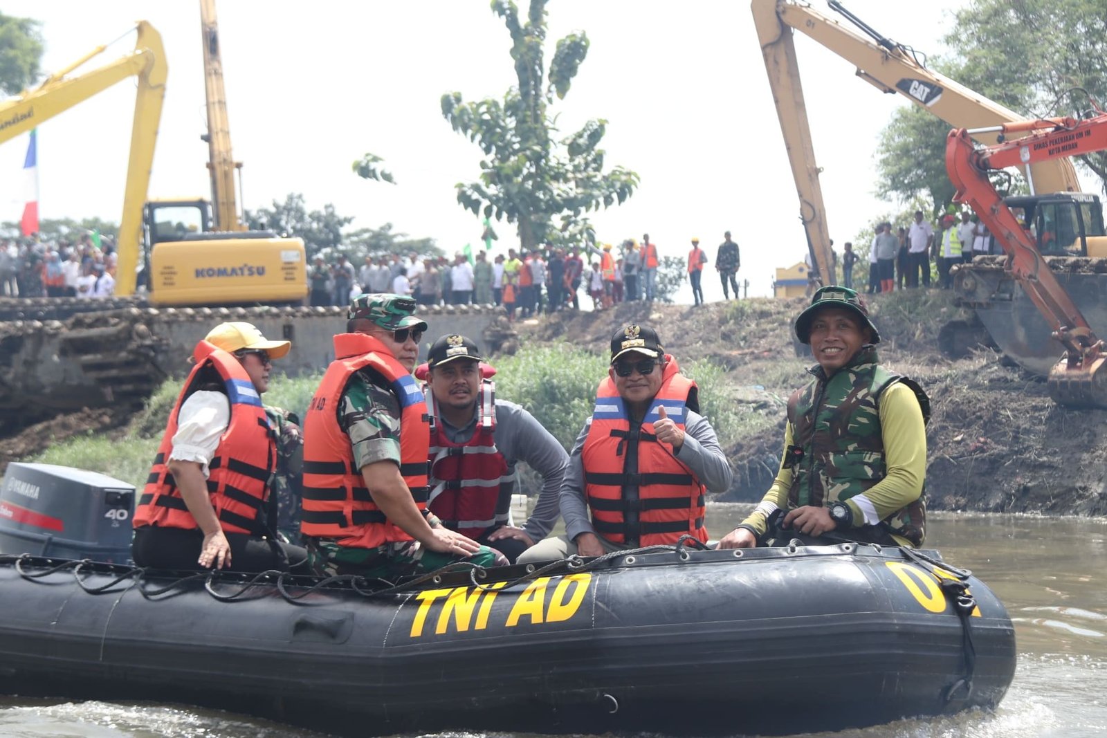 Pj Gubernur Hassanudin bersama KASAD Dudung Abdurachman juga turun langsung ke sungai dengan menaiki perahu karet. Sembari melihat langsung dari dekat upaya pembersihan Sungai Deli sepanjang 34,5 km, yang melibatkan 2.303 orang personel dan menggunakan sejumlah alat berat.