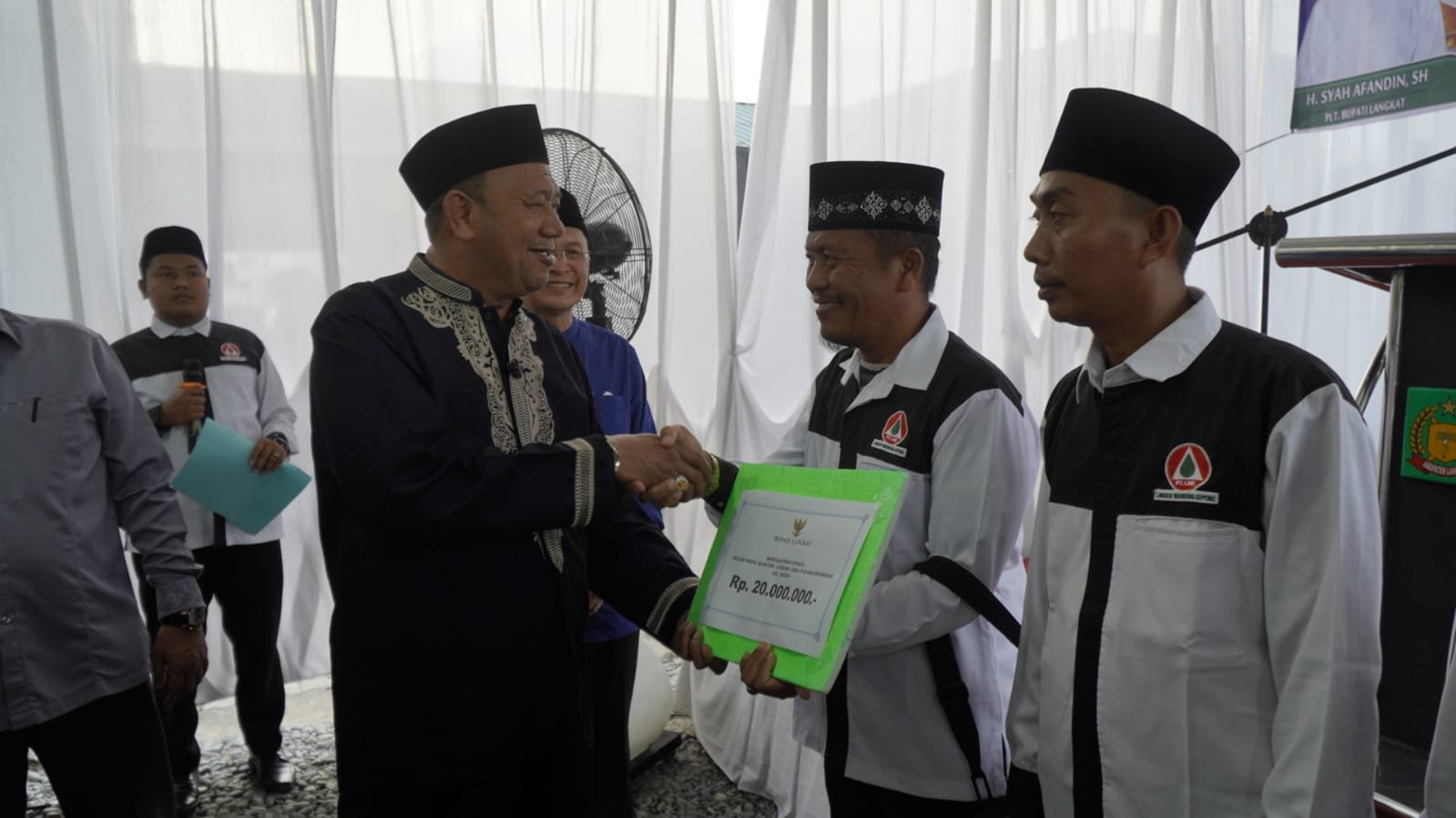 Selanjutnya Plt Bupati Langkat memberikan bantuan dana hibah kepada Masjid Nurul Islam Dusun Afdeling 1 Desa Padang Berahrang Kecamatan Selesai sebesar Rp.20.000.000.