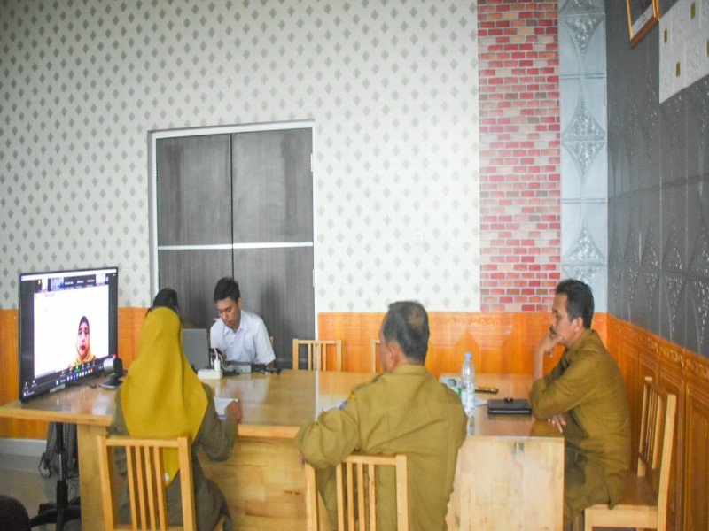 Plt. Sekretaris Daerah Kota Tebing Tinggi Drs. Bambang Sudaryono bersama Kabag Perekonomian dan SDA Ir. Nasrullah mengikuti Evaluasi Kinerja TPID dalam pengendalian inflasi daerah secara virtual (zoom meeting) di Ruang Kerja Sekda, Senin (27/2).
