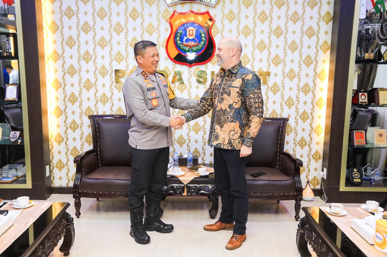Kapolda Sumut, Irjen Pol Agung Setya Imam Effendi menerima audiensi Courtesy Meeting dari Mr. Wayne Laviolette, Liasion Officier Royal Canadian Mounted Police di Mapoldasu, Kamis (7/9).