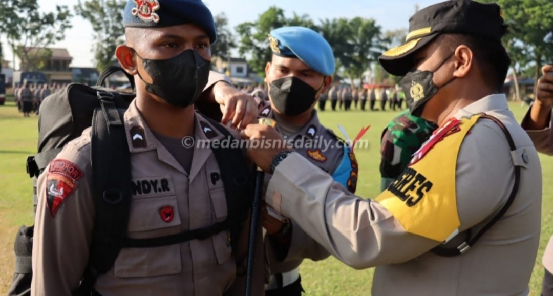 Kapolres Tebingtinggi AKBP Mochamad Kunto Wibisono.SH.SIK.MSI, memimpin apel gelar pasukan Operasi Mantap Huta Toba 2022 di Lapangan Batalyon B Sat Brimob Tebingtinggi, Rabu (30/3/2022).
