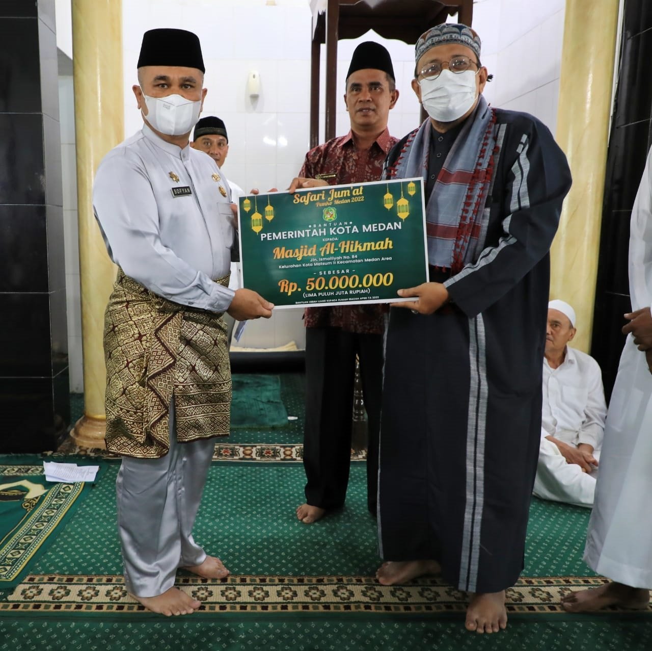 Bantuan ini diberikan Wali Kota Medan Bobby Nasution diwakili Asisten Pemerintahan dan Kesejahteraan Muhammad Sofyan kepada Ketua BKM Masjid Al Hikmah Chariyal Asadi sekaligus momentum safari Jumat Pemko Medan, Jumat (1/4). Selain itu Pemko Medan juga menyerahkan Akte pendirian koperasi kepada ketua Koperasi Masjid Al Hikmah dan bantuan steling dan alat olahraga sebagai dukungan untuk mewujudkan program Masjid Mandiri.