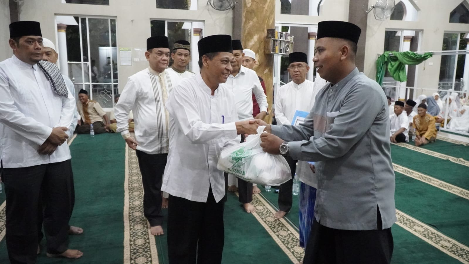 Dalam kegiatan itu dilakukan penyerahan bantuan hibah Rp20 juta untuk Masjid Jami’ Al-Amin, kemudian diserahkan juga kain sarung dan terakhir penyerahan sembako dari Baznas Langkat.