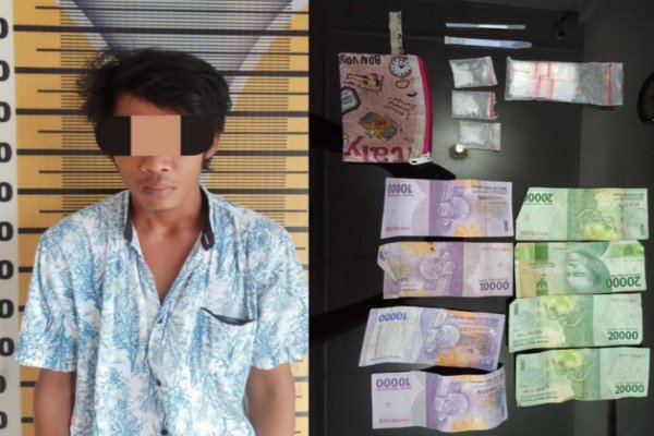 Dengan barang bukti yang diamankan dari terduga pelaku berupa  3 (Tiga) bungkus plastik klip transparan yang berisi serbuk kristal warna putih yang diduga Narkotika jenis shabu dengan berat kotor : 3,39 gram dan berat bersih : 2,46 gram. 1 (Satu) buah Dompet wanita warna pink.  37 (Tiga puluh Tujuh) buah plastik klip transparan ukuran kecil yang tidak berisi/kosong. 2 (Dua) buah pipet plastik warna putih berbentuk sekop. 4 (Empat) lembar uang kertas pecahan Rp. 20.000, dan 4 (Empat) lembar uang kertas pecahan Rp.10.000.
