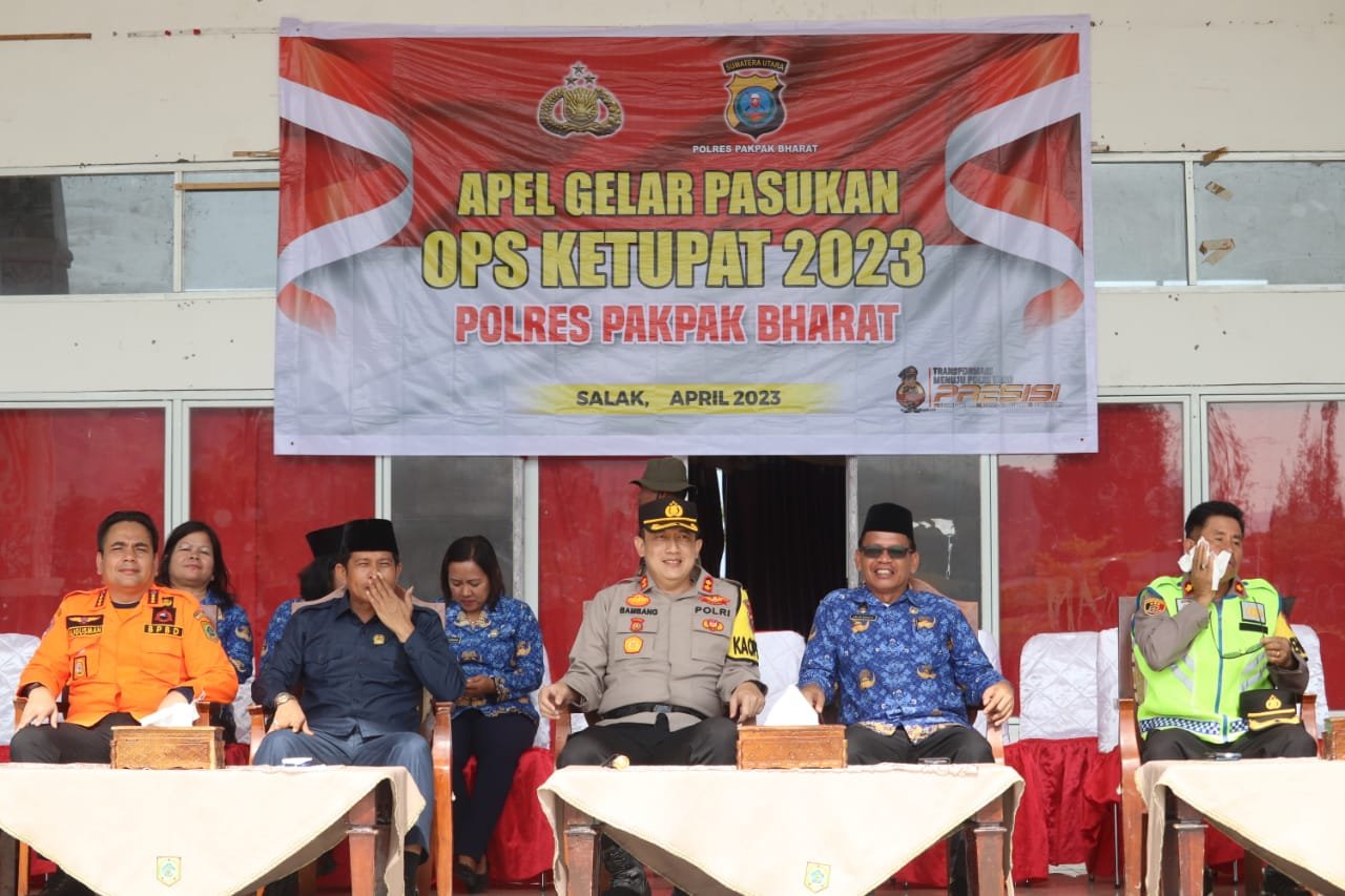 Kapolres Pakpak Bharat, AKBP Bambang Christanto Utomo SH. S.I.K. M.Si memimpin “Apel Gelar Pasukan Operasi lilin 2023” di Lapangan Kasean Banurea Salak, Senin (17/04).