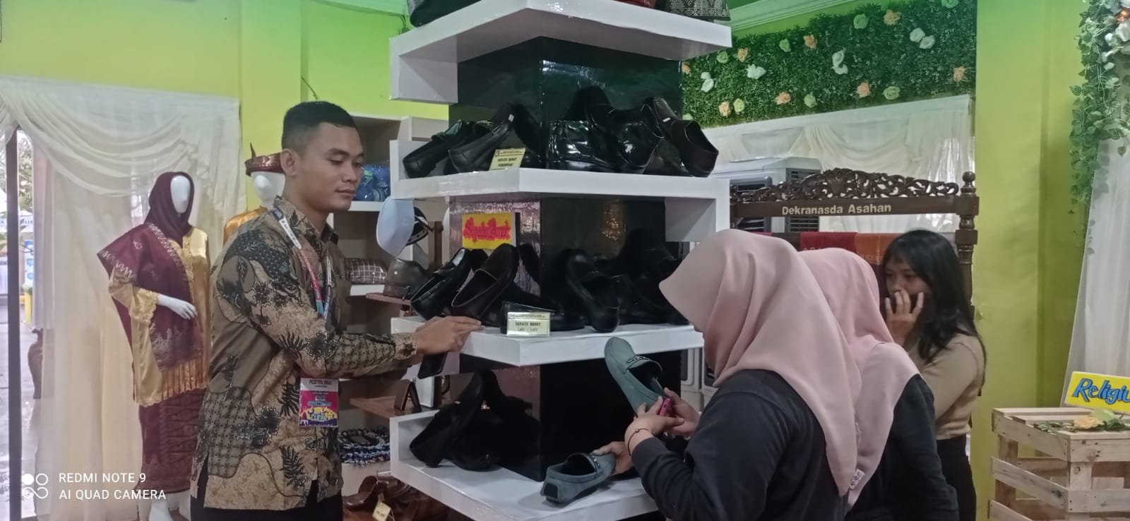 Sebagian besar pengunjung yang masuk ke Stan Pemkab Asahan di PRSU langsung melihat – lihat sepatu Bunut.