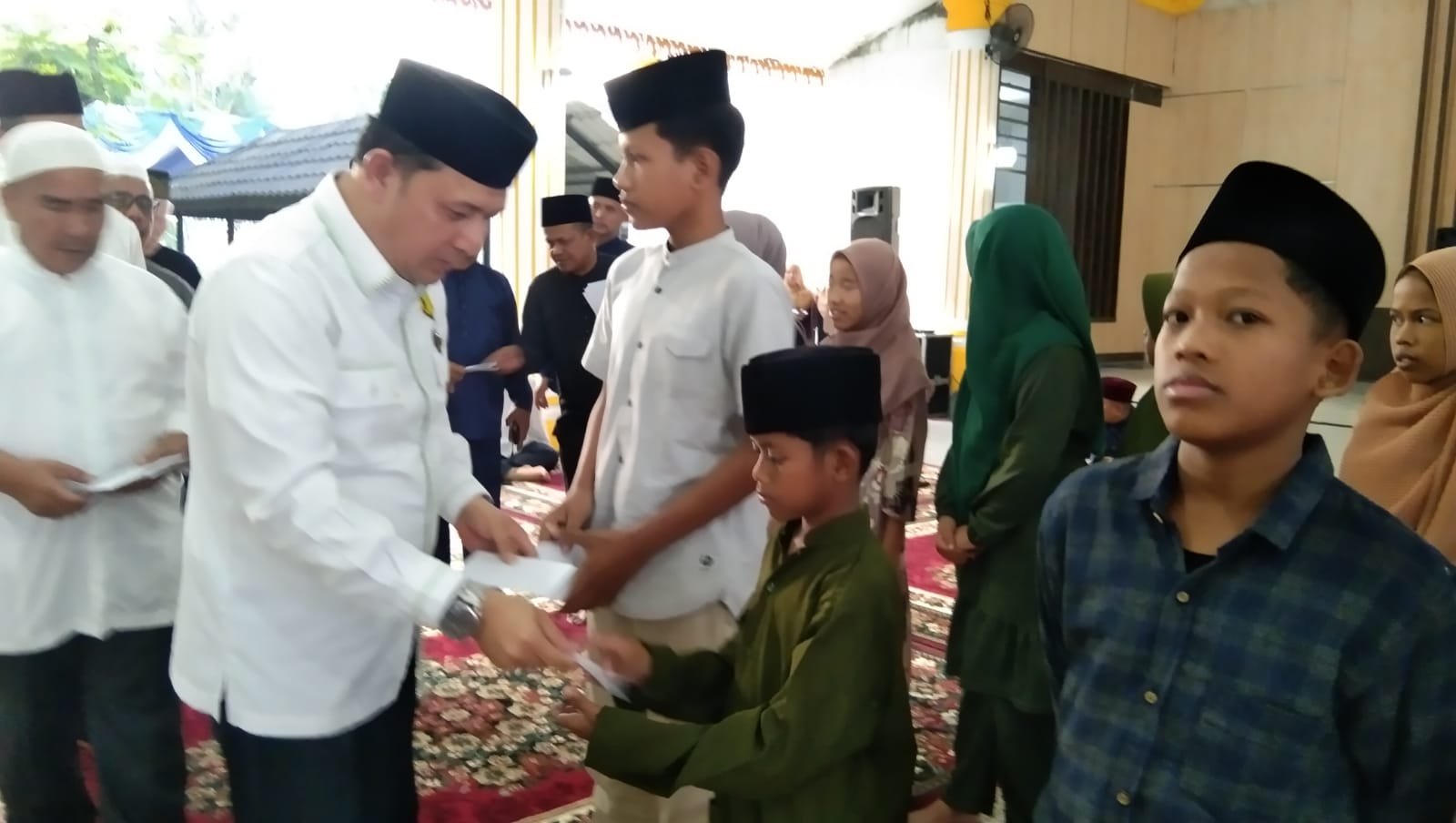 Acara diawali dengan pembacaan ayat suci Al-Quran oleh ananda Zidan, di lanjutkan dengan pemberian santunan kepada 20 orang anak yatim.