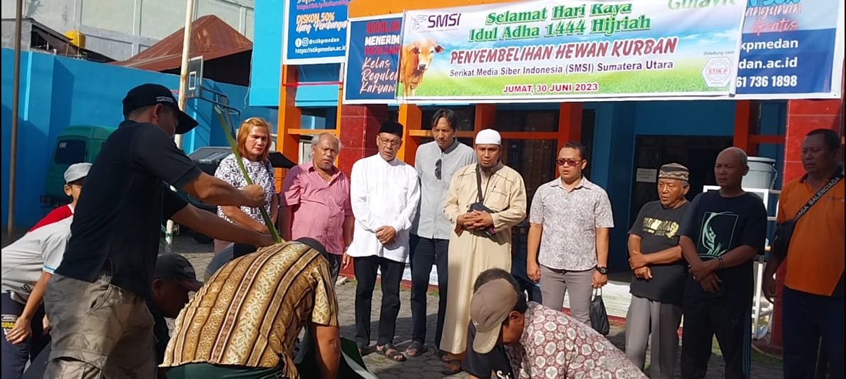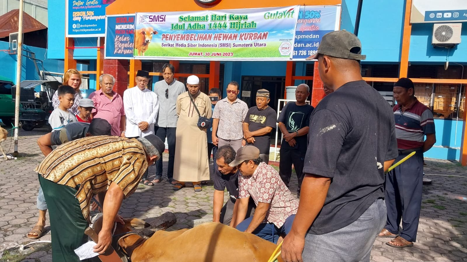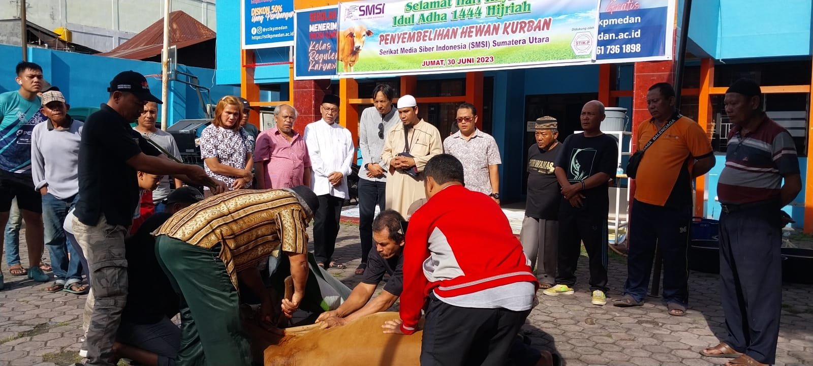 Pengurus Serikat Media Siber Indonesia (SMSI) Provinsi Sumatera Utara menyelenggarakan penyembelihan hewan kurban berupa 1 ekor sapi dan 3 ekor kambing di momen Hari Raya Idul Adha 1444 Hijriah/2023.