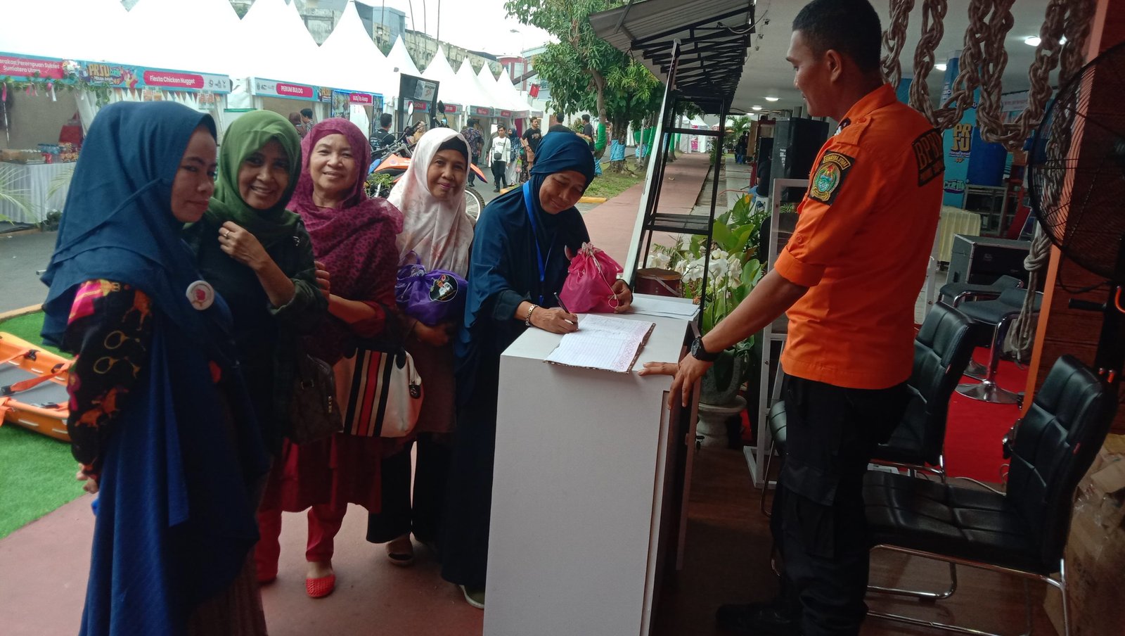Setiap pengunjung yang mengunjungi Stand BPBD Prov.Sumut dan menandatangani buku tamu yang mereka siapkan, akan memperoleh bingkisan yang dikemas dalam satu tas, yang antara lain berisikan berupa sabun mandi, masker, hand sanitizer dan sabun pencuci tangan.
