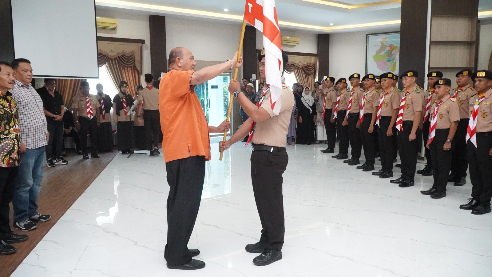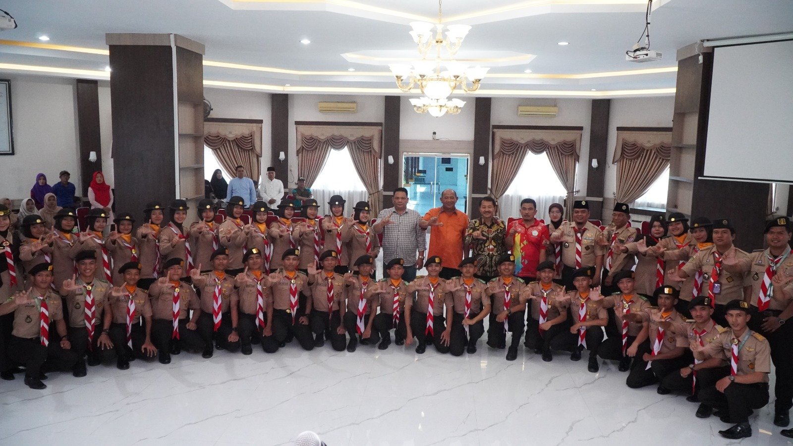 Plt Bupati Langkat H. Syah Afandin, SH menghadiri Pelepasan Peserta Raimuna Nasional, di Ruang Pola Kantor Bupati Langkat, Jumat 4 Agustus 2023.