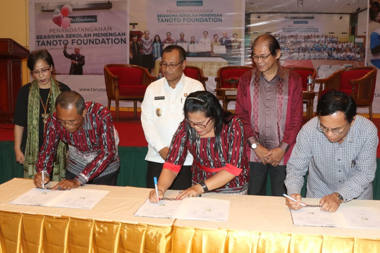 Selanjutnya, Wakil Wali Kota dan Dewan Penasihat Tanoto Foundation Hermanto Tanoto, Ketua Yayasan Bhakti Tanoto Margaretha Ari Widowati menyaksikan penandatanganan beasiswa sekolah Tanoto Foundation dengan mitra sekolah. Kemudian dilanjutkan dengan penyerahan sertifikat dan marchendise secara simbolis kepada 3 orang penerima beasiswa Tanoto Foundation yakni Diny Aulya Fitri dari SMP Dr Wahidin Sudirogusodo, Jenry Wandiko Sitopu dari SMA Letjen Haryono MT serrta Yutri yang berasal SMK Brigjen Katamso Medan.(di)