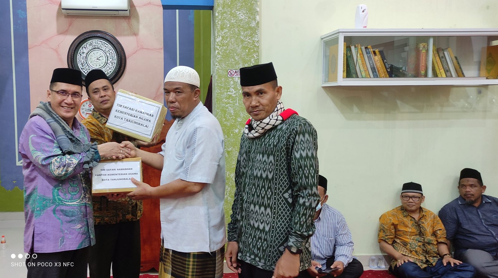 Dalam kesempatan tersebut Kepala Kantor Kemenag kota Tanjung Balai DR H Al Ahyu, menyerahkan bingkisan penali kasih kepada BKM Masjid Nurul Hasanah Al-Akbar(SB).